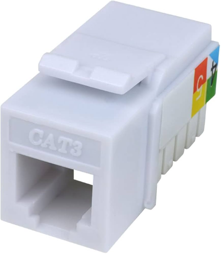 El keystone Cat 3 está diseñado para aplicaciones de telefonía y redes básicas. Es compatible con placas y patch panels estándar, ofreciendo una instalación sencilla y una conexión confiable en sistemas de cableado estructurado.